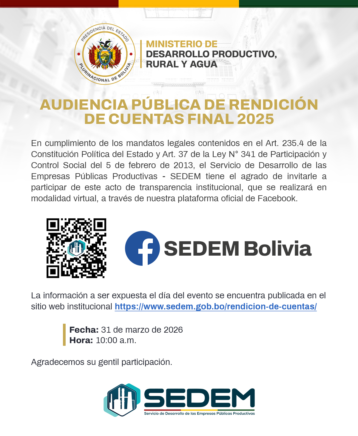 DEUDA DE CASI MEDIO MILLÓN DESDE 2018: APREHENDEN A EX CLIENTE QUE DEBÍA BS 475 MIL A EMPRESA PÚBLICA Y EL SEDEM IMPULSA RECUPERACIÓN DE RECURSOS DEL ESTADO