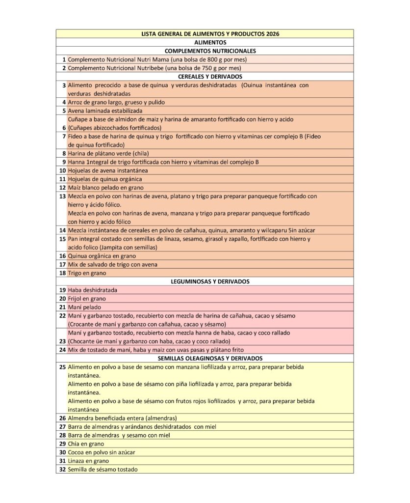 La nueva lista, trabajada en coordinación con el Ministerio de Salud, redefine la composición del subsidio priorizando alimentos reales, proteínas y productos de mayor calidad nutricional. En ese marco, se confirmó la eliminación de productos como galletas, queques y brownies, que durante años formaron parte del paquete, dando paso a alternativas como nuevos tipos de queso, carne de cerdo y alimentos funcionales como el kéfir.