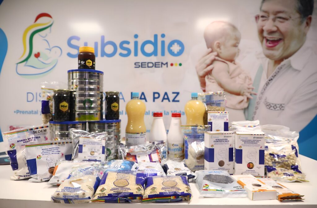 La Paz, 3 de octubre de 2025.- El Servicio de Desarrollo de las Empresas Públicas Productivas (SEDEM), a través de la Gerencia de Subsidios y Articulación Productiva, presentó oficialmente el paquete de subsidios 2025-2026, una canasta de alimentos reforzada con mayores cantidades de productos clave, elaborada en base a sugerencias de las madres beneficiarias y con el objetivo de garantizar una nutrición adecuada durante la gestación y lactancia.